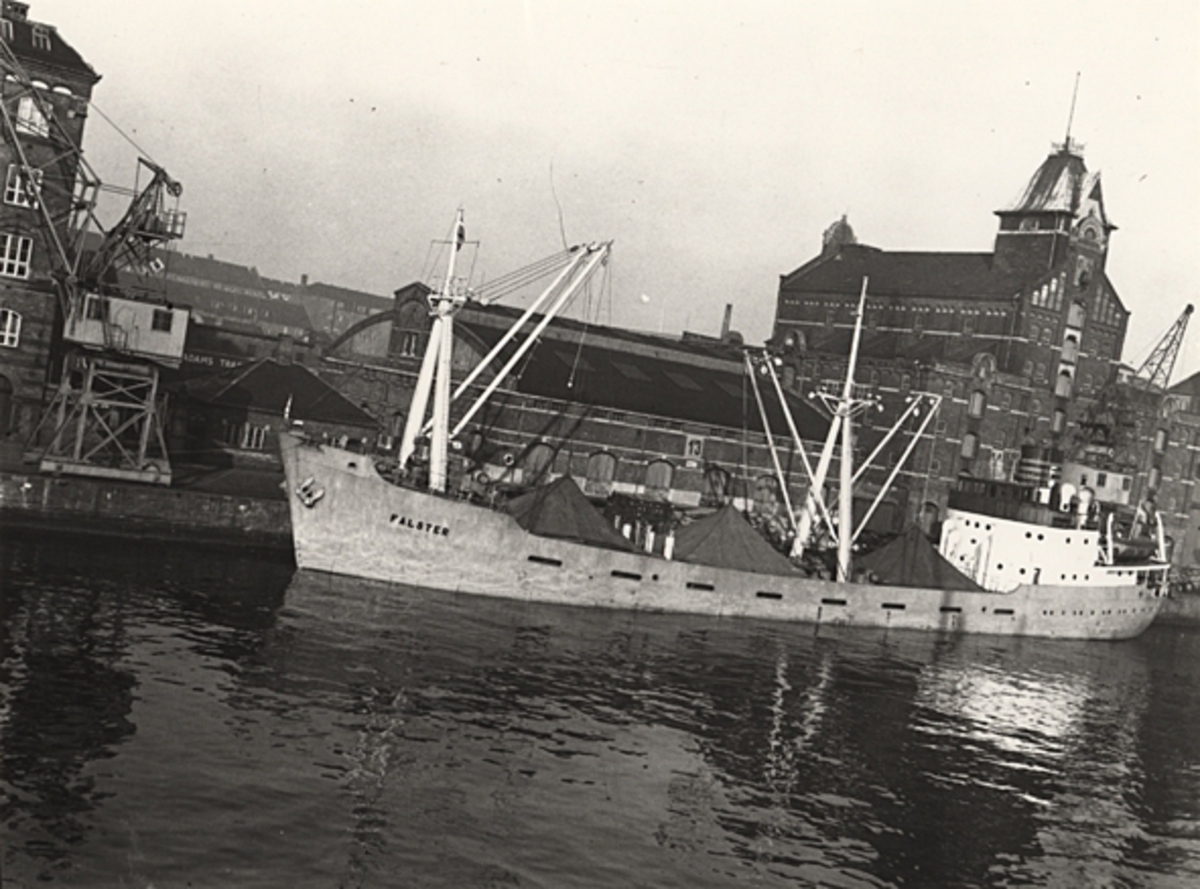 Lastmotorfartyget "FALSTER" av Kristinehamn i Köpenhamn under 1950-talet.