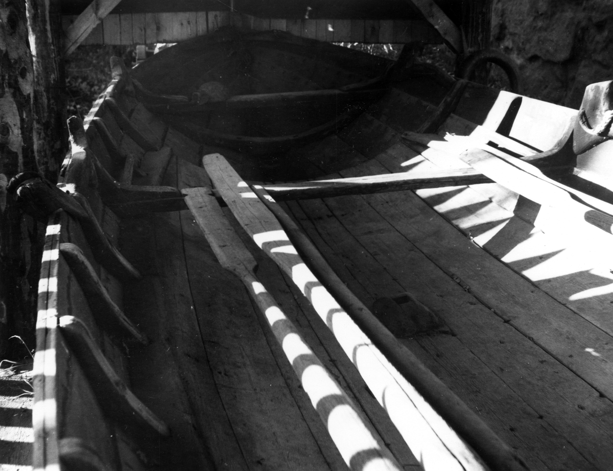 Skötbåt från Bolka. Inredning. I hembygdsmuseet i Öregrund okt. 1954.