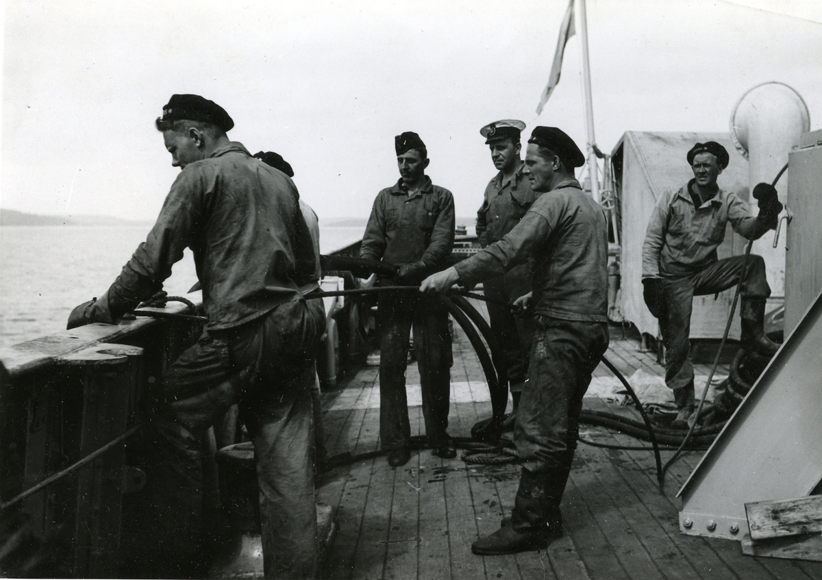 Belo´s besättning i arbete med slangar och wires i Erstaviken.