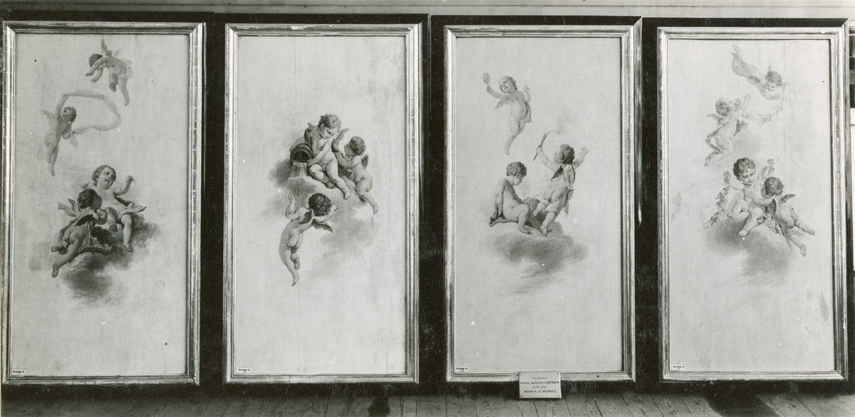 Utställning av AMPHIONs inredning. Målningar i kajutan av Desprez före konservering av konservatorerna Nilsson och Svensson.