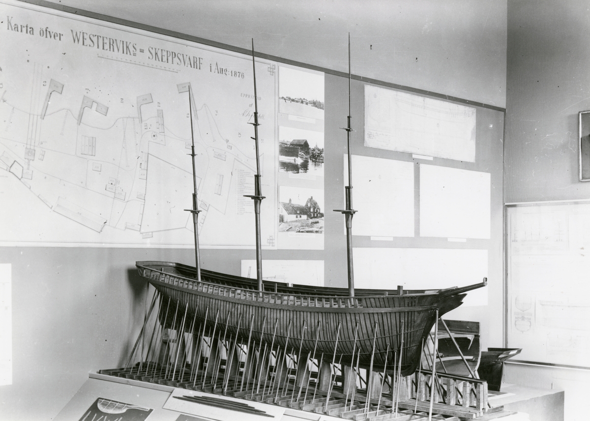 Tillfälliga utställningen "Varv och skeppsbyggeri". Fartygsmodell skeppet INDIEN.