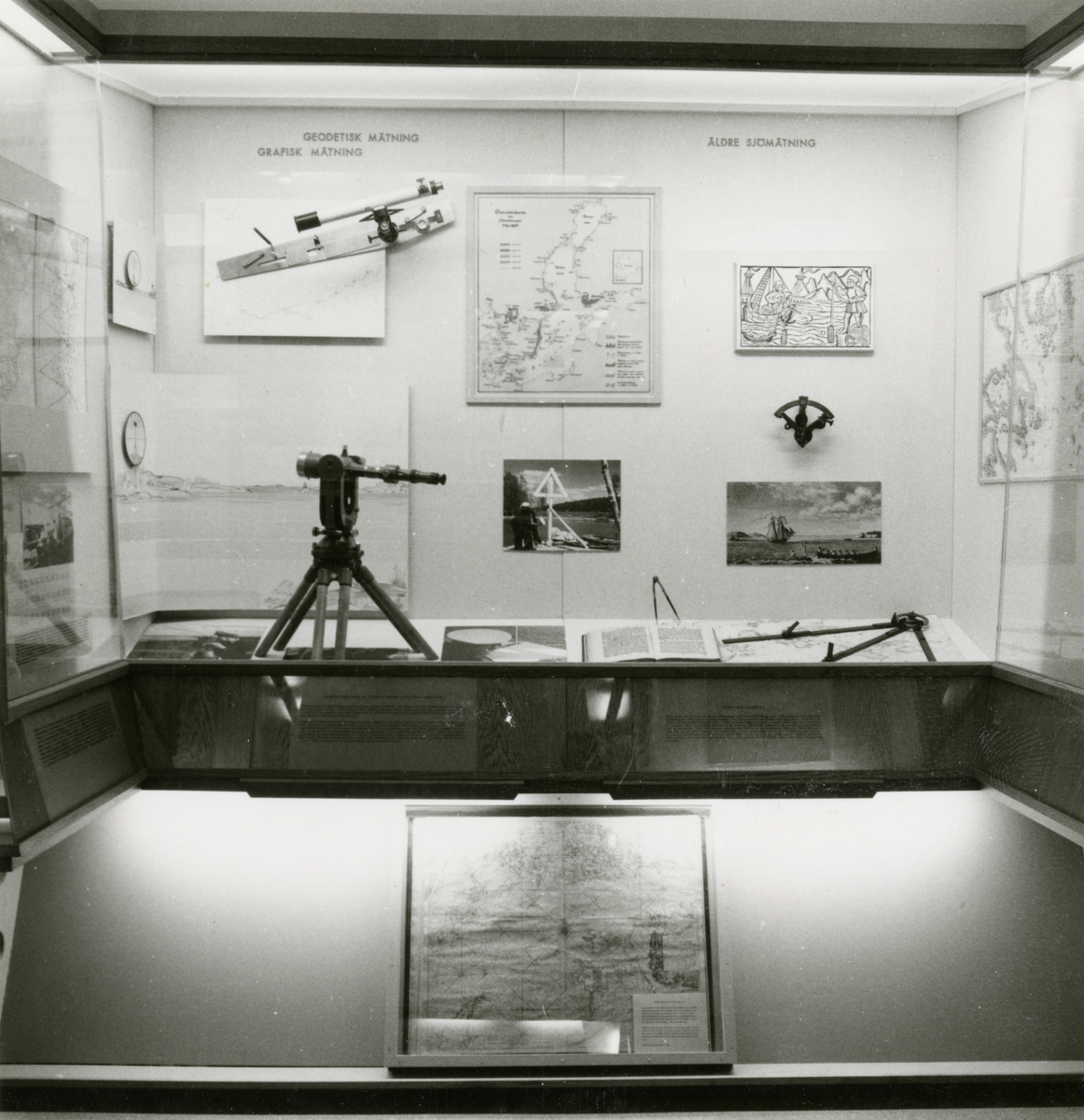 Utställningen "Fyr- och lotsväsende". Monter visandes geodetisk mätning, grafisk mätning samt äldre sjömätning.