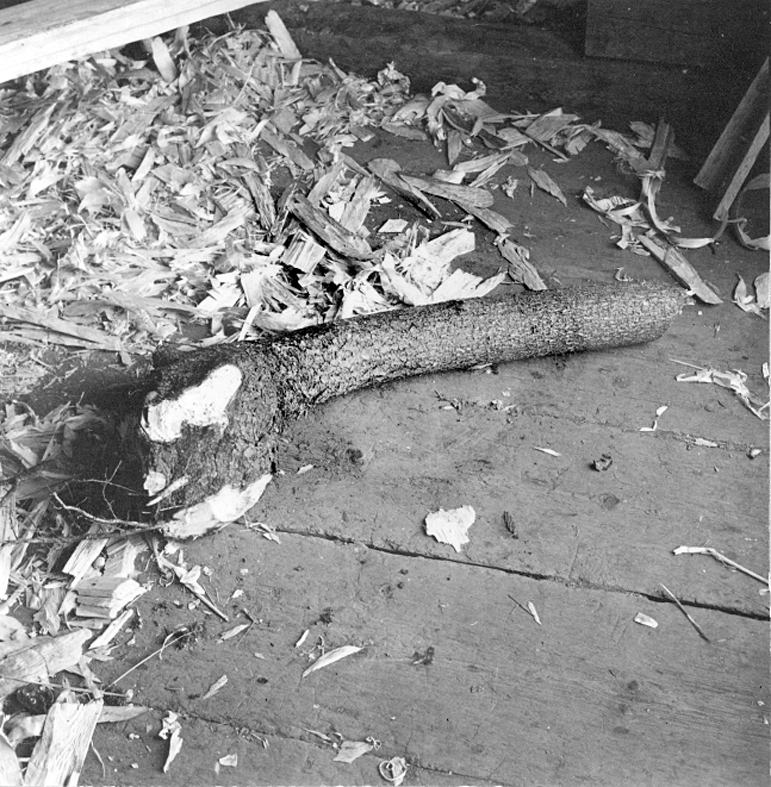 Neg nr 35. Ämne till förstävens övre del, "framskarven". Av gran. Foto 6.8 (1962).