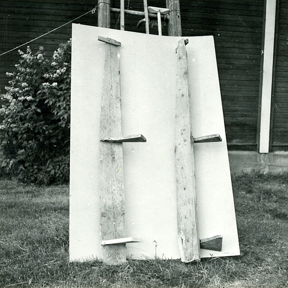 Kinningsmallar. Använda vid tillforming av kinningarna till skötbåt. Sedan borden hyvlats till sättes de in i basränna för att mjukas upp med ånga. När de blivit väl genomkokta, sättas de med hjälp av träklämmor fast på mallen (se bilden). Där får de stå tills de svalnat och torkat (1-2 dagar). Då ha de också fått sin rätta form och kan fästas till köl och stäv.och stävar. Jfr SU:1952:16. Mallarna köpta av båtbyggaren K.A. Viklund den 11.7. 1952 till Sjöhistoriska museet genom Olof Hasslöf.