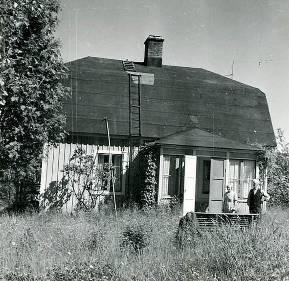 Båtbyggaren Johan Pettersson, hans hustru och deras hus.