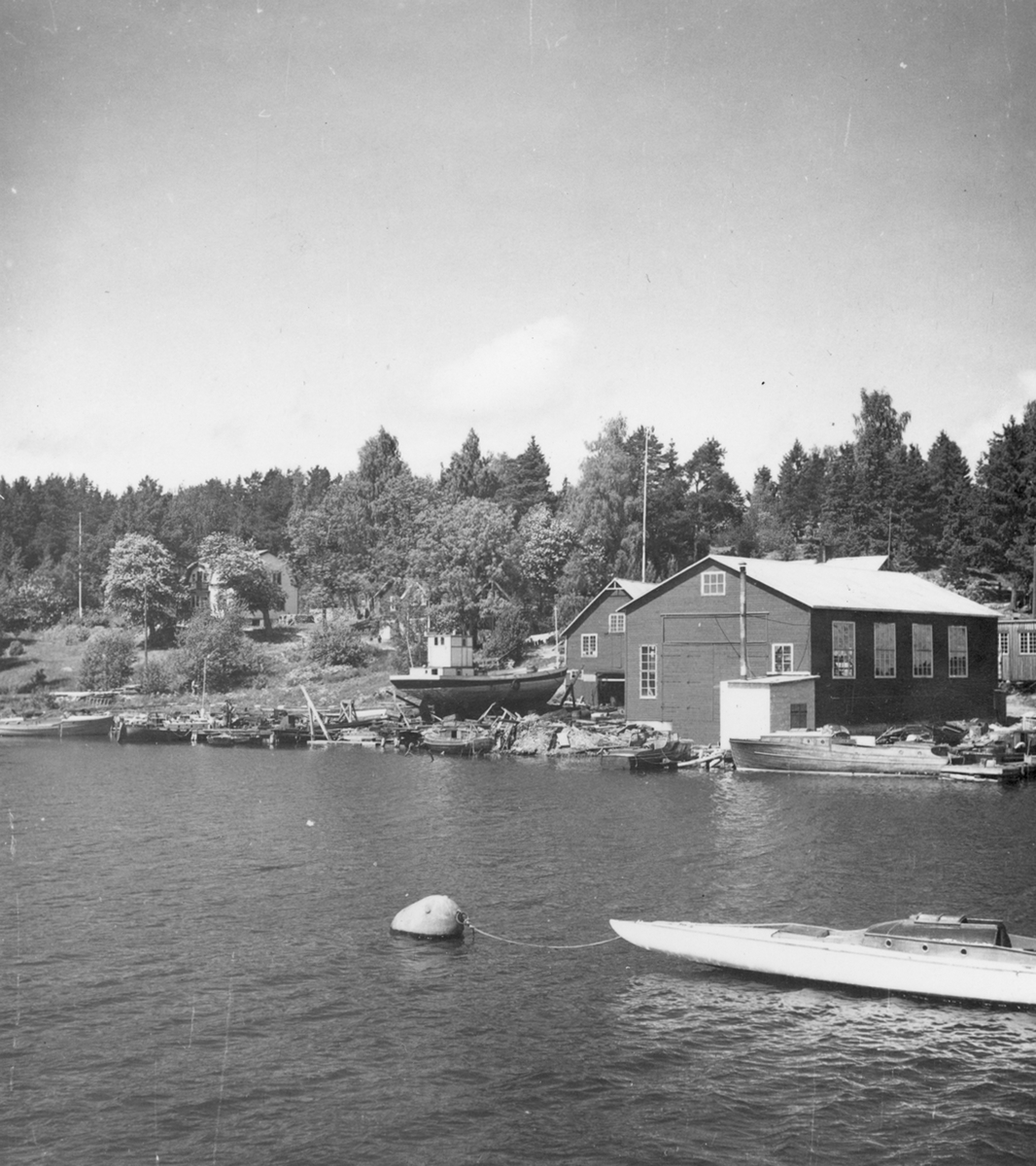 Uppland, Stockholms län, Frötuna skeppslag, Länna socken, Bergshamra. Parti av Bergshamra varv och verkstad från StO. juni 1950