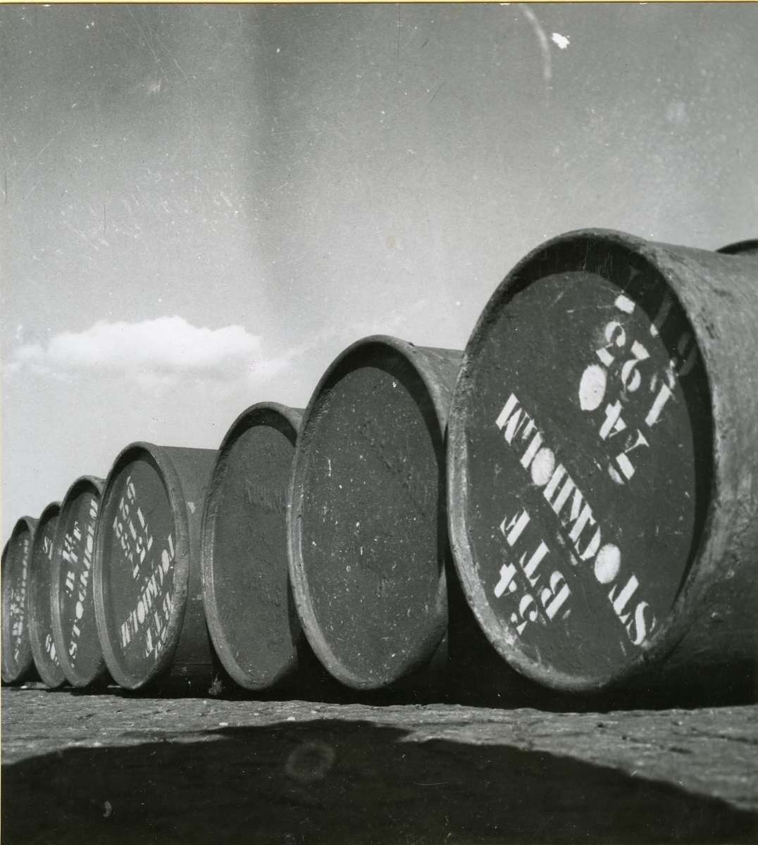 En rad spritfat till Vin- och Spritcentralen på kajparad vid Londonviadukten.