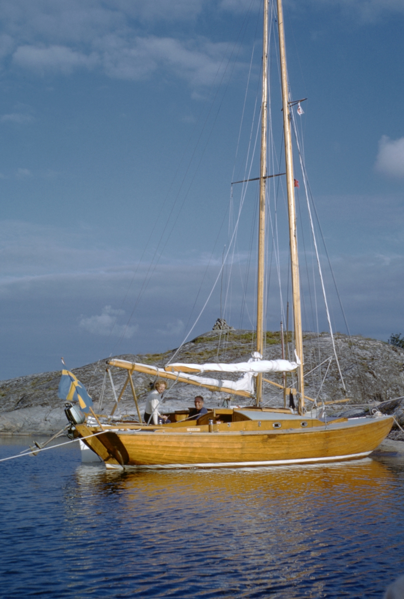 Folkbåten F-S133 KARP, ex FANTOMEN, ankrad i skärgården.