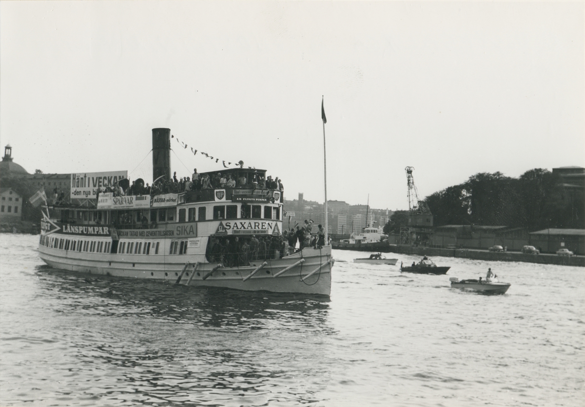 [handskrivet på baksidan, skönjbart vid genomlysning:] "[s]/s Saxaren vid hemkomsten efter [d]en olycksaliga grundstötningen. Foto Th. Ehrnlund 5 sept 1964." [---]