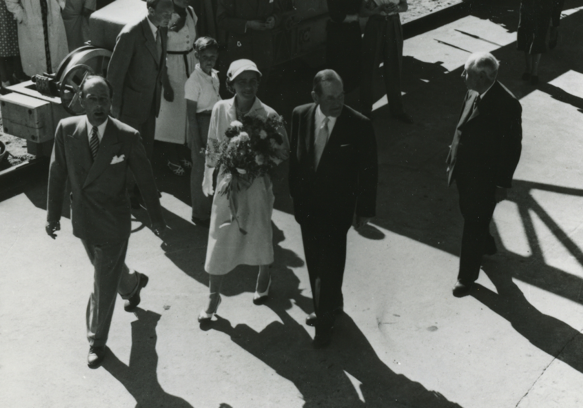 Oskarshamns varv. Direktör Robert Ameln och bergsrådinnan Disa von Rettig strax före dopet 1.7.1952.