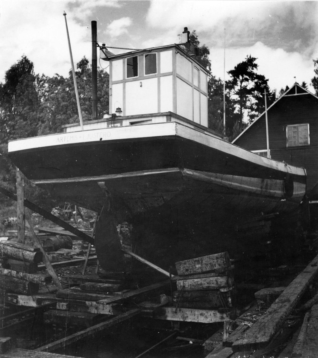 Uppland, Stockholms län, Åkers skreppslag, Ljusterö socken, Bergshamra varv. sandkilen Artemis av Ljusterö på bergshamra verkstad.