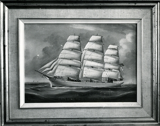 Fartygstavla hos fru Ruth Pålsson. Lady Lina från Helsingborg. Capt. A. Mortensson. Oljemålning på duk signerad C. Kensinton. Skåne, Malmöhus län, Viken.