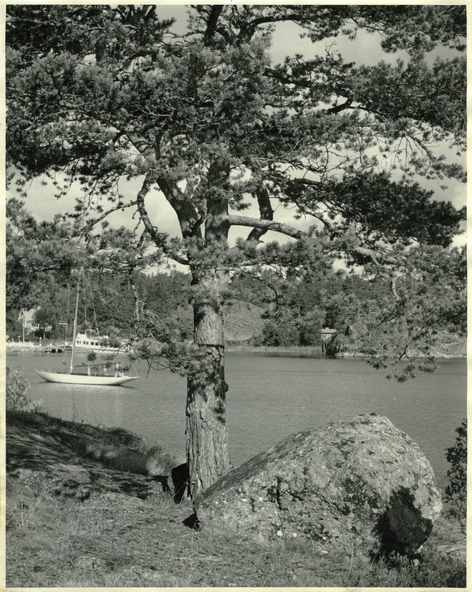 [text på baksidan av den ram där kopian tidigare varit monterad, återlämnad till Anita Dahlfors:] "9-m R-yachten TULLA byggd 1914 Johan Anker Asker Norge exploderad 1959 foto 1955 av en engelsman Kennet [sic] Robertson"