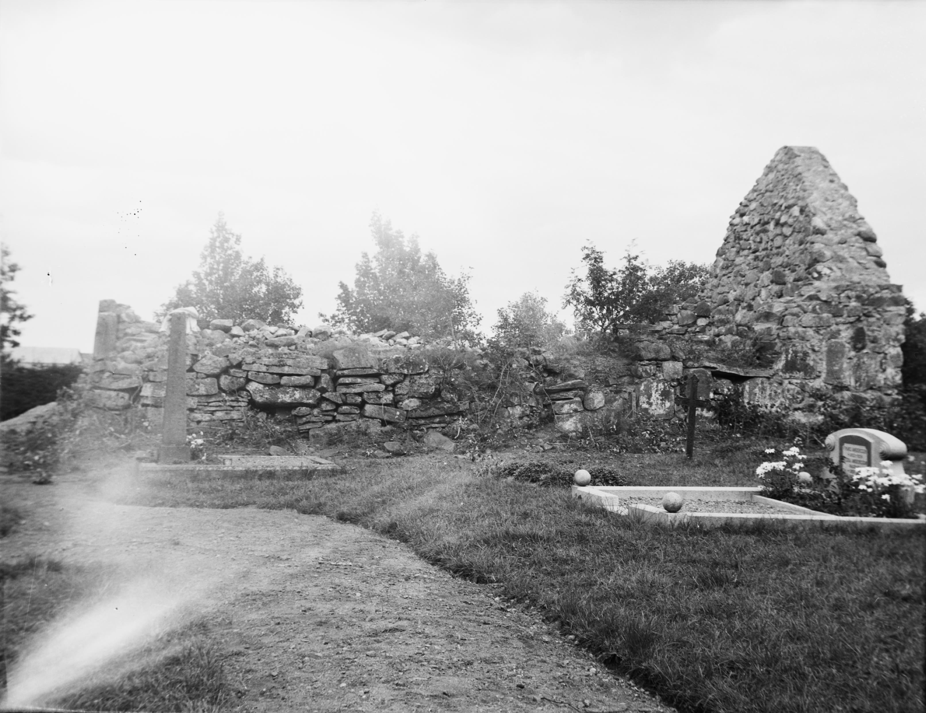 Kyrkogården och kyrkoruinen. Efter röjningen.