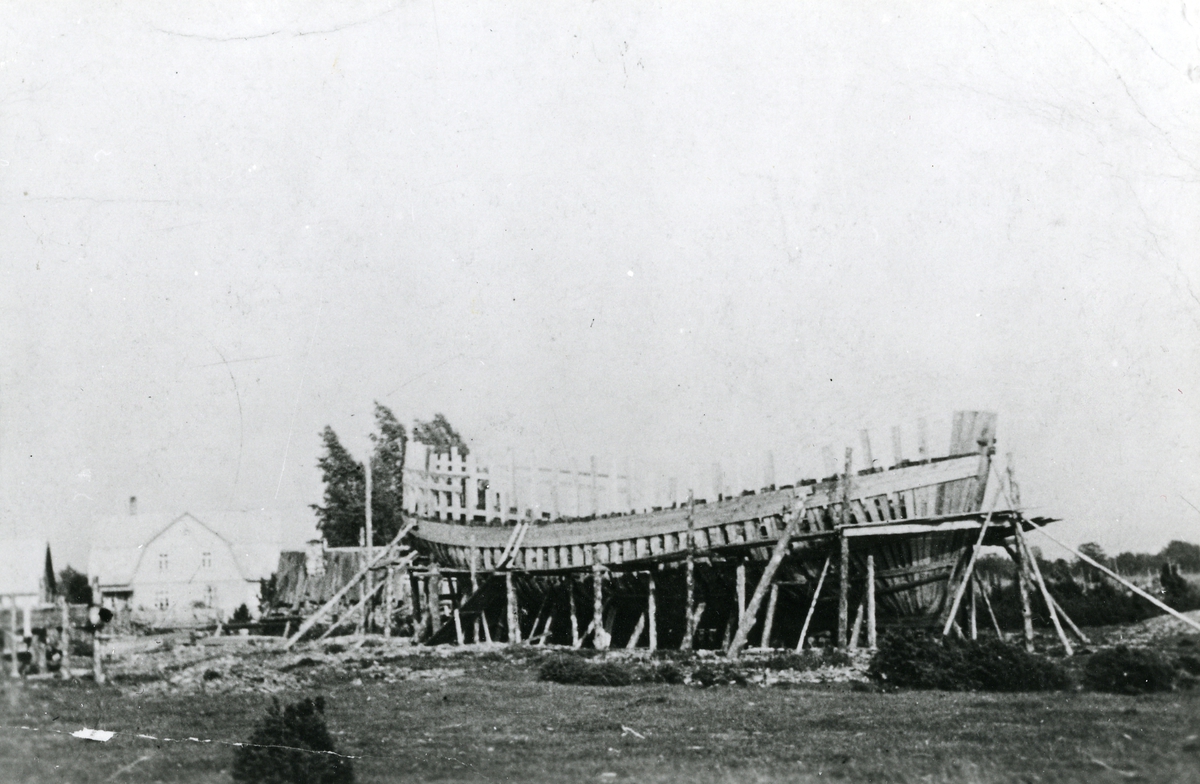 Fartyg under byggnad på Haldi Strand, Emmaste, Dagö 1944 för slekten Koolmeister (blev aldrig klar förstörd vid ryska inmarschen).