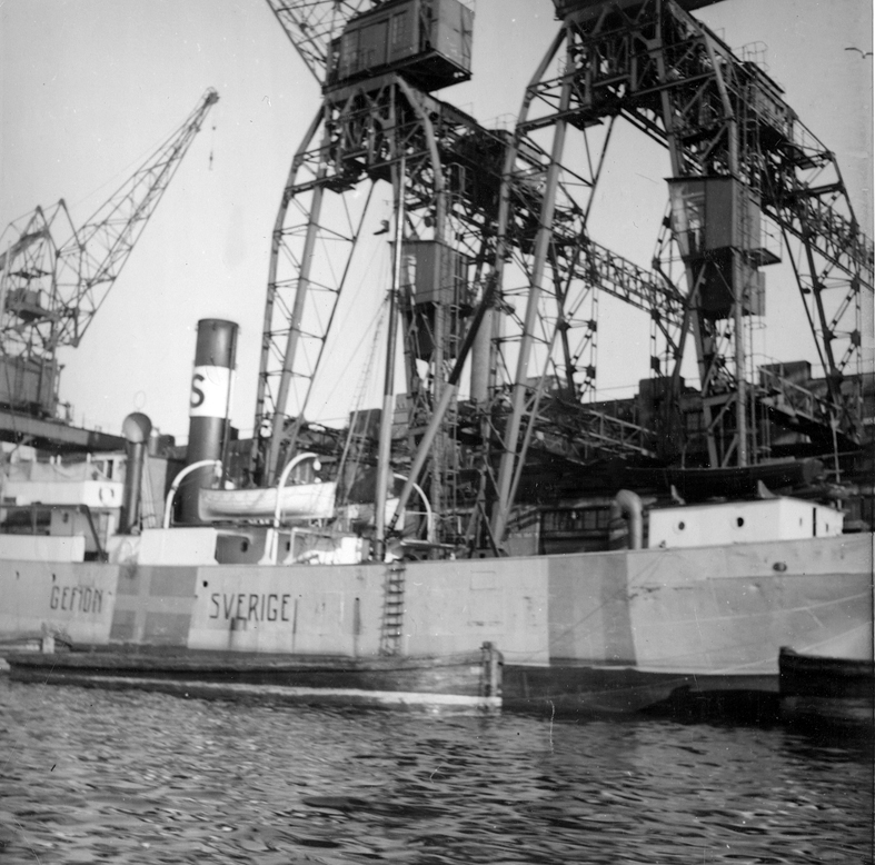 Göteborgs hamn. S/S Gefion av Stockholm. Rederi AB Svea, vid Stigbergskajen, juni 1940. Fil Gunnar Jonssons undersökningsresa till västkusten juni 1940. 189
