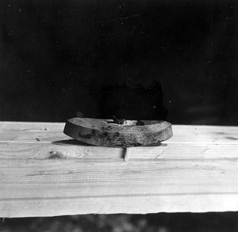 Neg nr 43. Hyvel, "klös", använd vid upphyvling av spikränder i kantprofiler. L 12cm, bladbredd 1 cm, höjd 2cm. Foto 6.8 (1962).