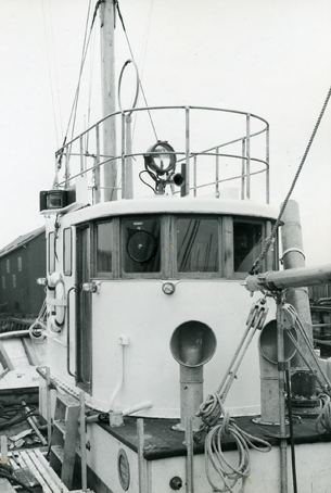 Holms skeppsvarv. Styrhytten på Gissur Hviti för Hornafjordur, Island 1953-54.