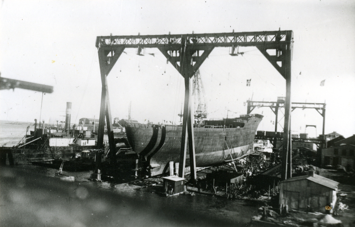 Ett av de norska fruktfartygen under byggnad i slutet av 1940 talet