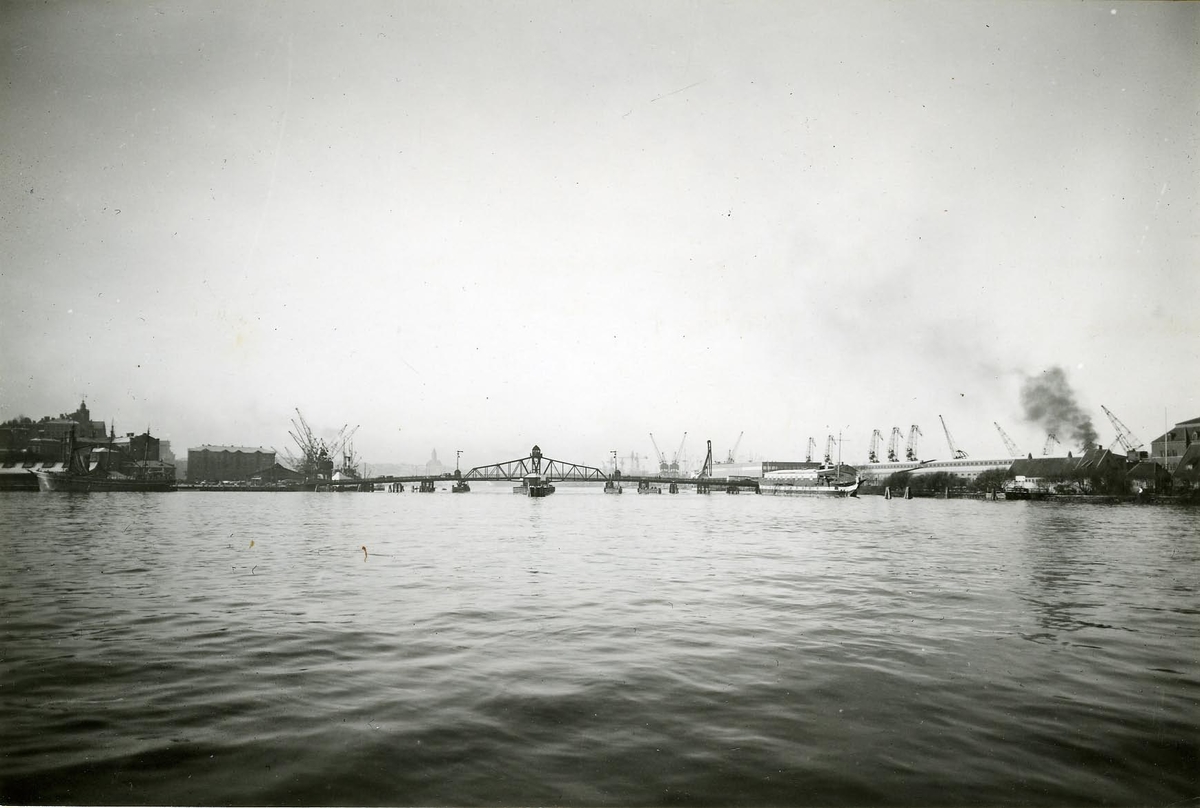 Hisingsbron fr. Ö. T.v. Navigationsskolan, t.h. frihamnen.