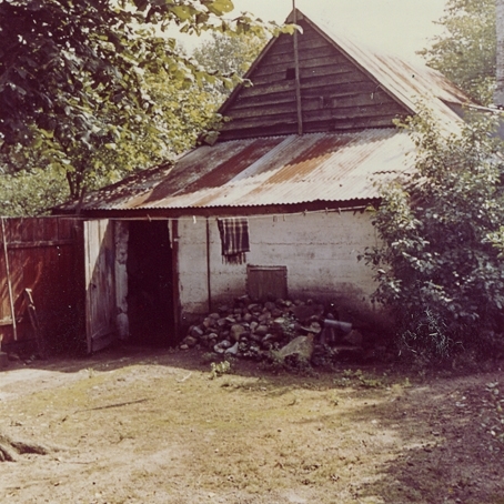 Verkstadens nordgavel sedd från gårdsplanen mellan denna och boningshuset. Christian Madsens båtbyggeri. Foto N(ils) Nilsson aug (19)64. Danmark, Själland, Lynaes.
