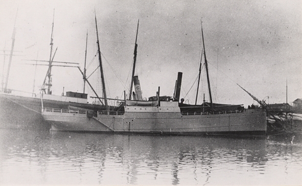 Fartyget gick på grund i Kristianiafjorden 1903, bärgades och såldes från Göteborg till Arendal. Bilden tagen i Moss 1904 efter reperationen.