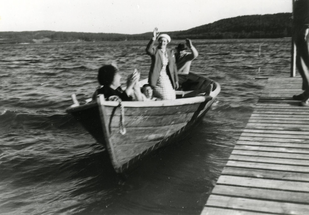 Ångermanland, Bäckfjärden. Fiskaren Leonard Lundgren med familj på utfärd med skötbåten.