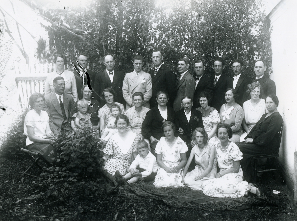 Gruppfoto av familjen Hällqvist Mannen i hakskägget: Stamfadern, Dikare på varvet.