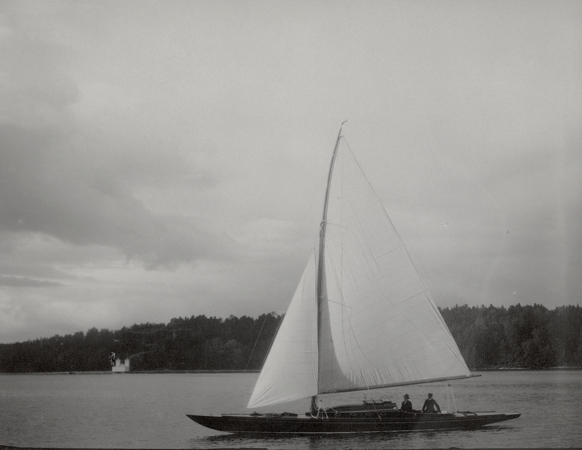 [från fotobeskrivningen:] "'Sonja var en lång, smal båt.'" "Troligen under provturen 1920." "Salanders samling. Jfr. SSHM:s arkiv 5:F II." [---]