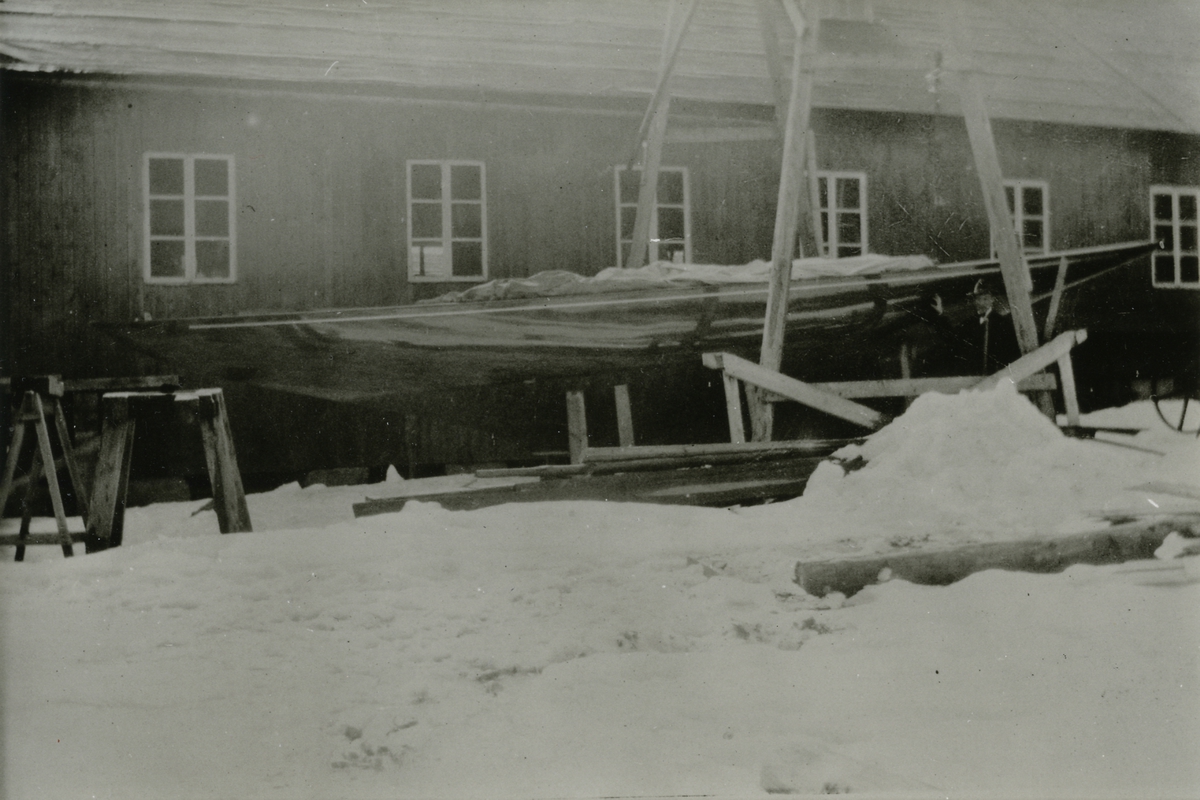 Titel: 6 meters R-jakt. GKSS lottbåt 1924 inför leverans. Bilden är tagen utanför Holms varv i Gamleby.