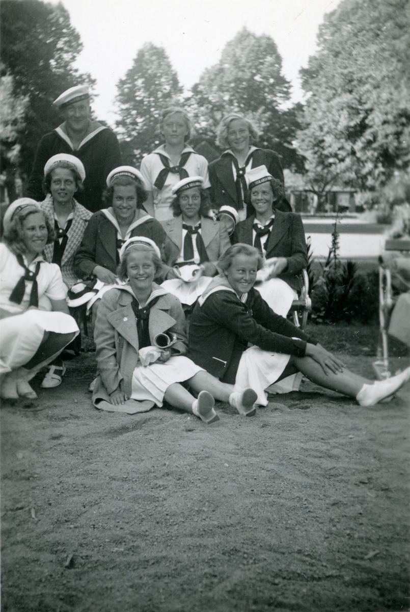 Elever från Svenska Seglarskolan utomhus på en grusplan.