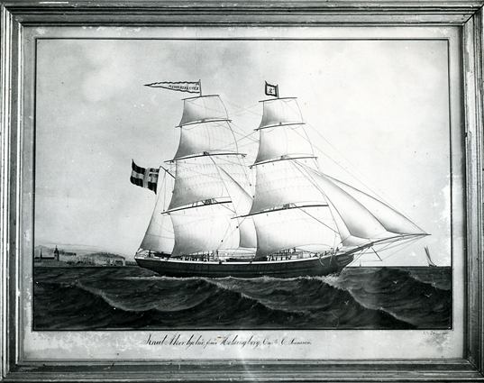 Fartygstavla hos fru Ruth Pålsson. Knut Åkerhjelm från Helsingborg. Capt. C. Svensson. Akvarell signerad L. P. Sjöström 1866. Skåne, Malmöhus län, Viken.
