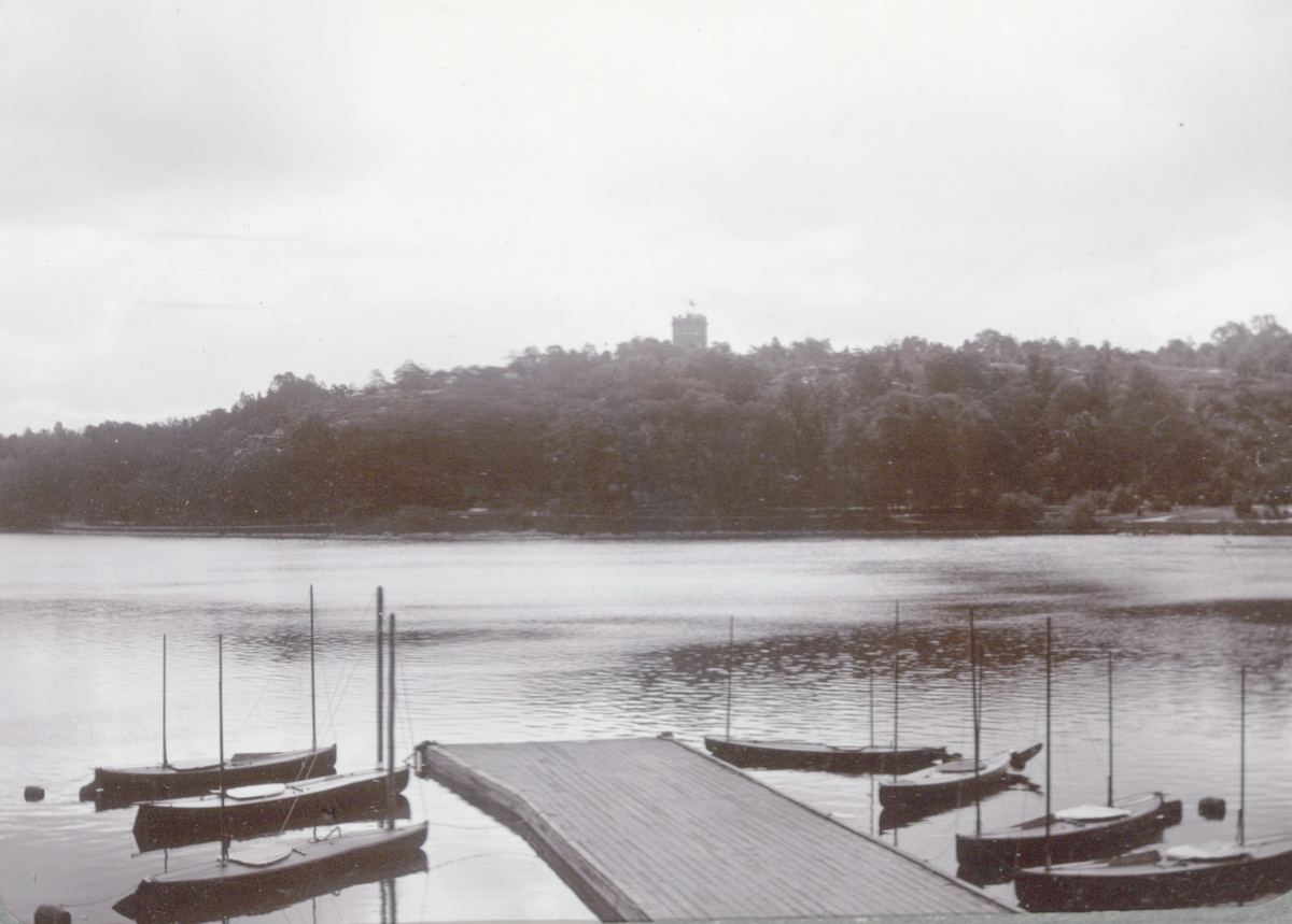 Utsikt över Djurgårdsbrunnsviken från FKI:s kanotbrygga vid Laboratoriehagen, Stockholm.