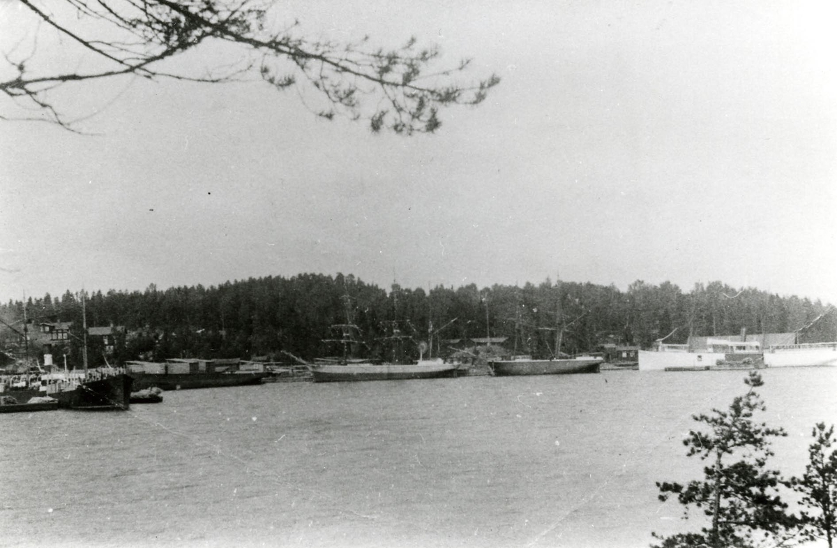 Hamnen i Rossö, Ångermanland, år 1915. Vita båten t.h. är Carl XV som trafikerade Stockholm - Rossö en gång i veckan fram till 1918.