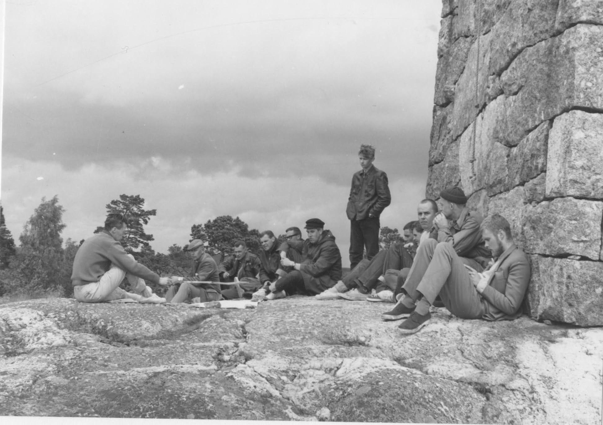 Instruktionskurs för spordykare vid Älvsnabbensmonument, Mysingen, sommaren 1965.