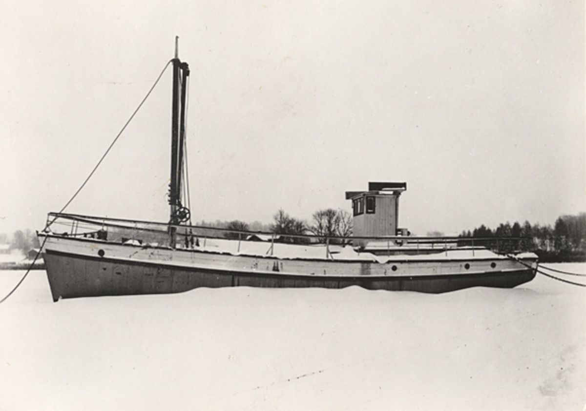 M/S EMIL, fotograferad i februari 1943. "Byggd i Gevle, var vattenbåt på 1870-talet."