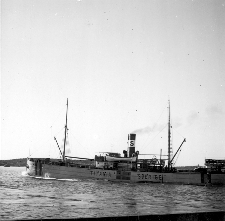 Göteborgs örlogsdepå. S/S Titania av Stockholm på utgående från Göteborg. Fil Gunnar Jonssons undersökningsresa till västkusten juni 1940. 189