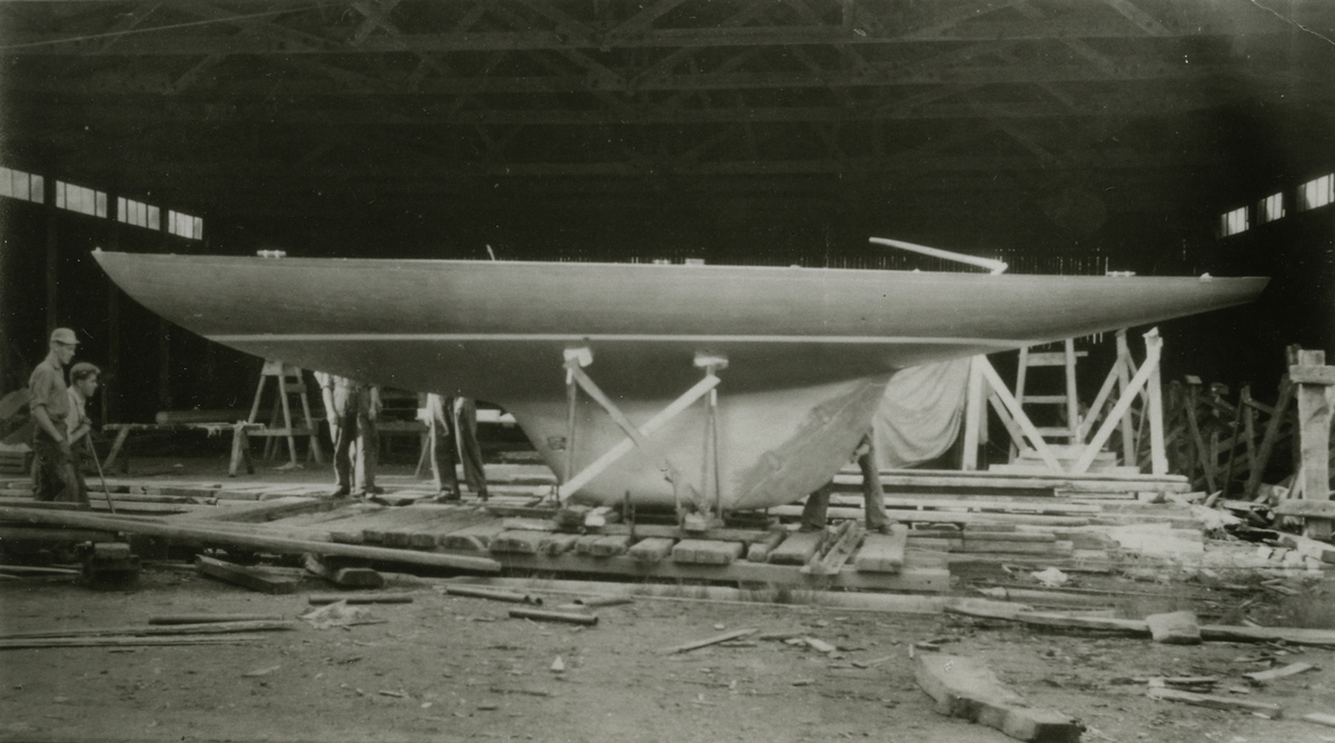 Troligen 5.5:a, byggd runt 1950. Bilden är tagen utanför Holms varv i Gamleby. (experimentkonstr. lägg märket till rodret)