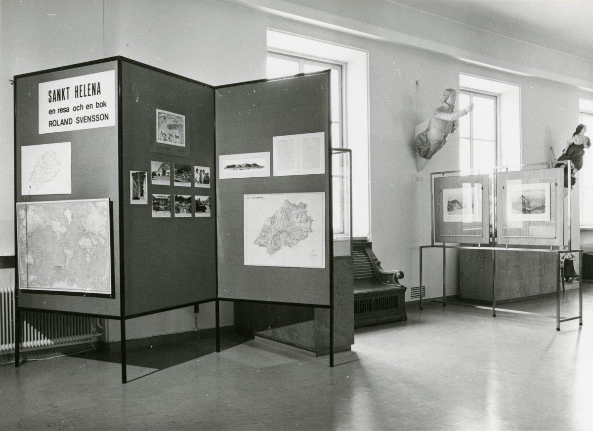 Utställningen "Sankt Helena en resa och en bok", akvareller och litografier av Roland Svensson. Inledningsskärmen.
