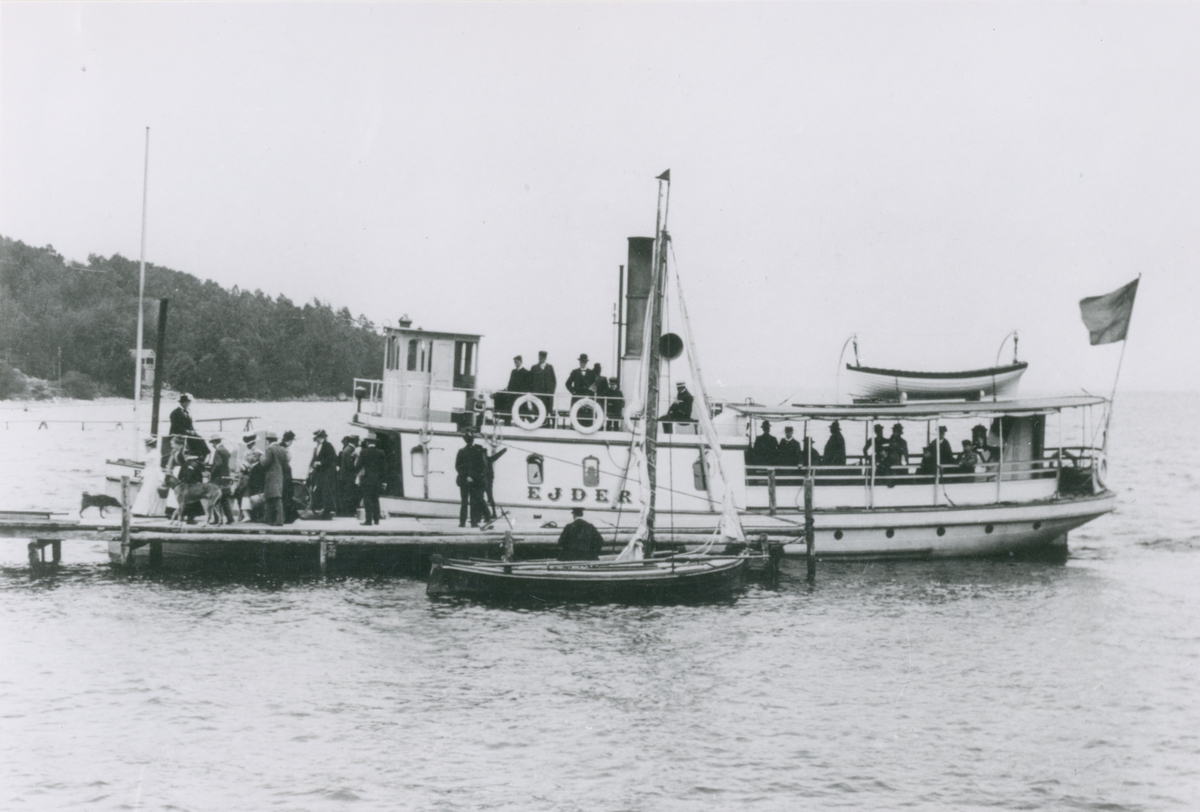 Passagerarångfartyget EJDERN av Linköping vid Sandviks brygga [sjön Roxen] 1902.