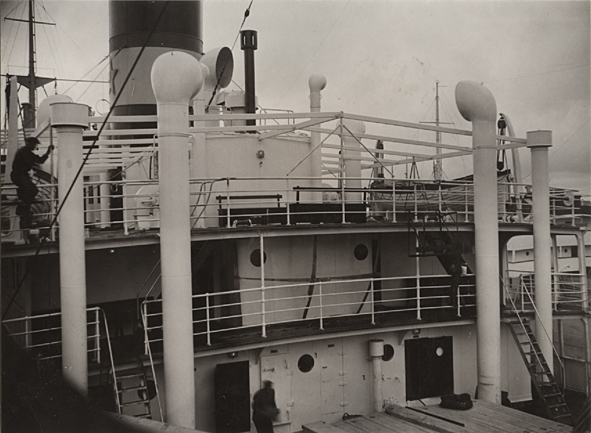 Lastmotorfartyget BRASIL av Stockholm, byggt i Göteborg 1935. Midskeppsbyggnaden akterifrån.