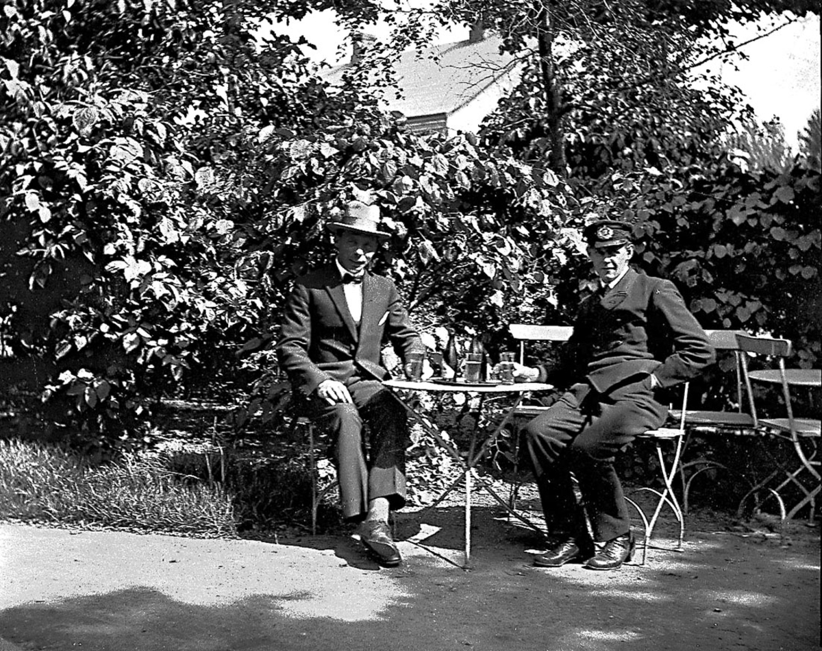Två herrar dricker läskedryck.