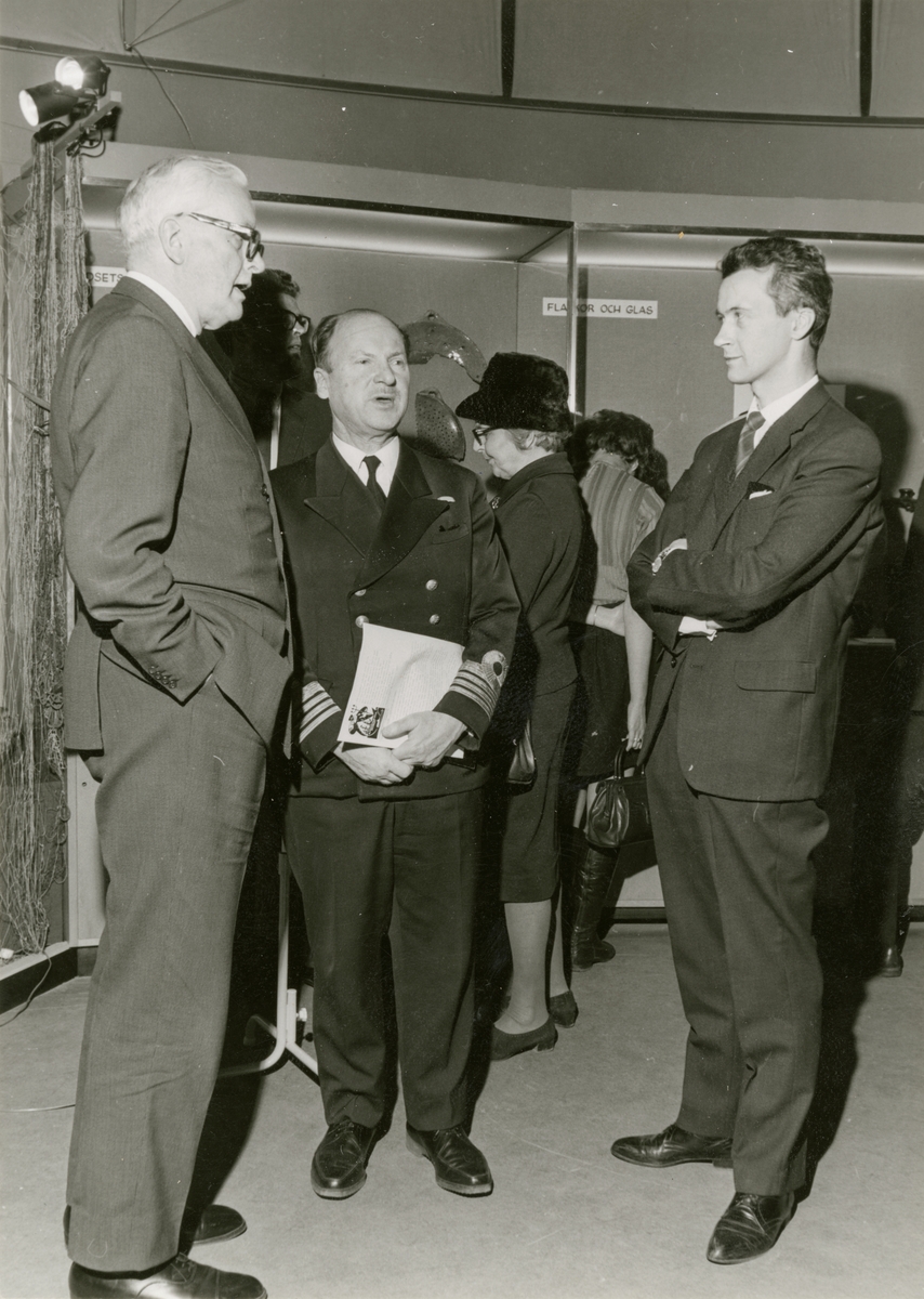 Utställningen "Djurhamn Historisk ankargrund". Professor Gösta Berg, kommendör Fredrik Taube, fru Gunnel Hazelius-Berg och intendent Göran Sundström vid vernissagtillfället.