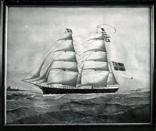 Fartygstavla hos fru Ruth Pålsson. Carl XI från Helsingborg. Capt. C. T. Evaldr. Akvarell utan signatur. Skåne, Malmöhus län, Viken.