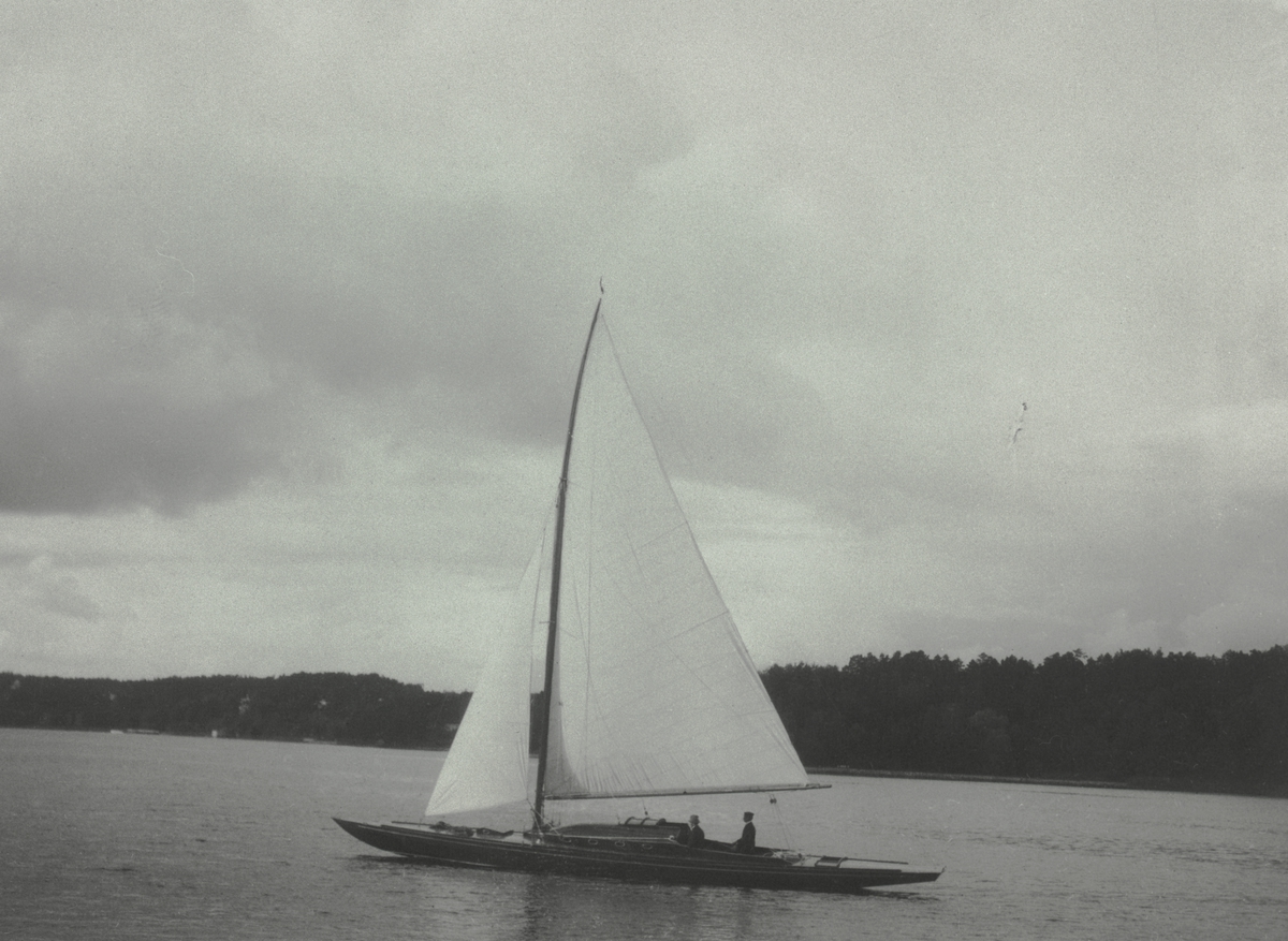 [från fotobeskrivningen:] "'Sonja var en lång, smal båt.'" "Troligen under provturen 1920." "Salanders samling. Jfr. SSHM:s arkiv 5:F II."