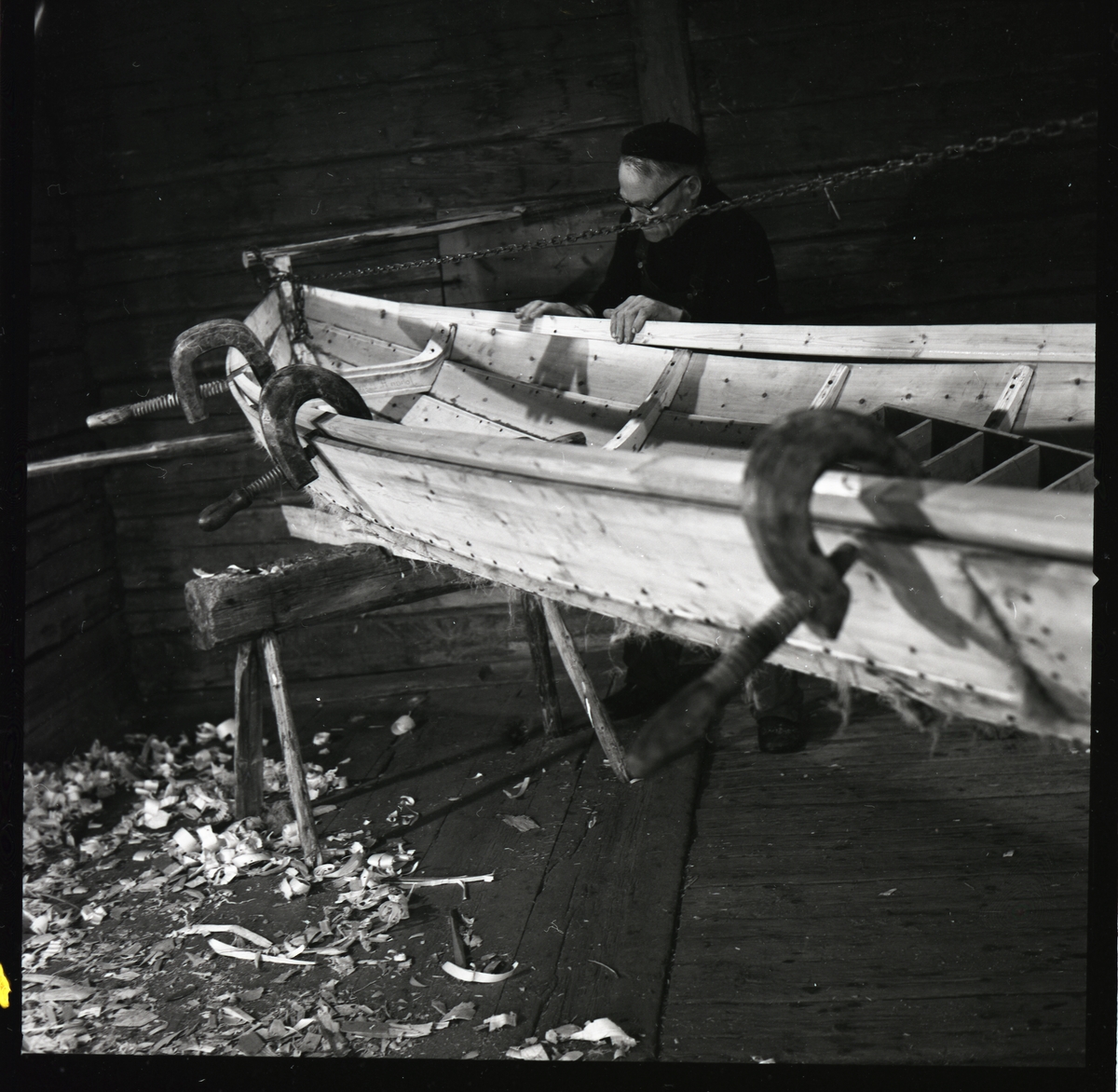 Neg nr 261, Relingslist under inböjning på styrbord sida. babord relingslist fastsatt med skruvtvingar. Foto 20.8 (1962).