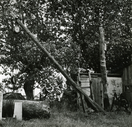 Kranställningen, tv en ekstock som ännu inte sågats upp. Christian Madsens båtbyggeri. Foto N(ils) Nilsson aug (19)64. Danmark, Själland, Lynaes.