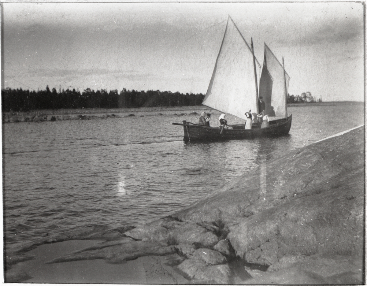 [från fotobeskrivningen:] "Kråkön. Loggertriggad skötbåt på utfärd. Bilden från 1899." [---]