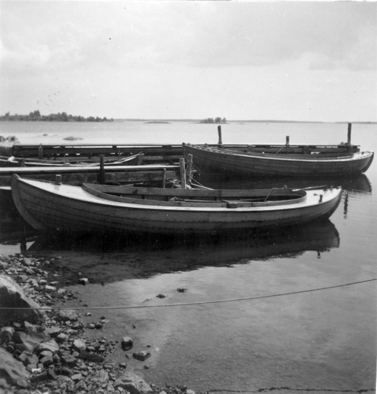 Småland. Kalmar län, Stranda härad, Döderhults socken, Påskallavik. Lotsarna Holmströms och Dillströms båtar. den hitre båten byggd för Holmström i Saltvik 1933. L 20 fot, 4 hkr Solo nestor. den bortre byggd av båtbyggare Westin i Mönsterås för fiskare på Arkö i Sthlms skärgård. köpt av Dillström 1935. L 24 fot, 10 hkr. Pentamotor.