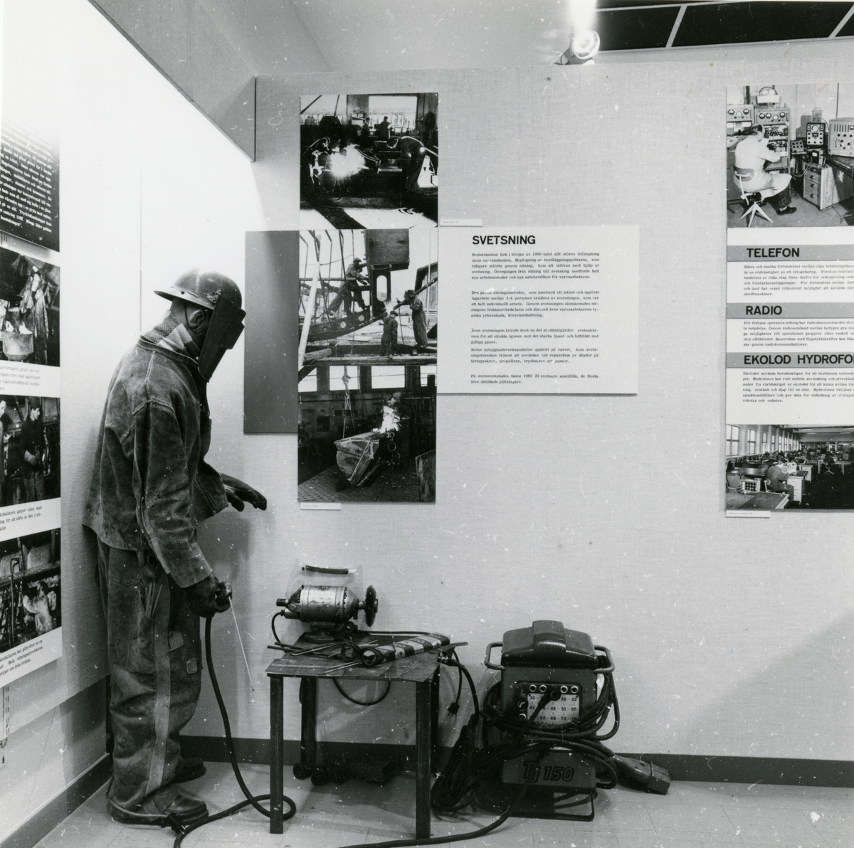 Utställning "Varvet bakom muren Stockholms Örlogsvarvs utflyttning till Muskö". Svetsning på varvet.